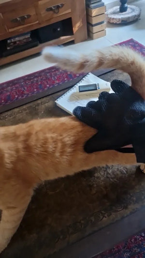 Majoritatea pisicilor adoră senzația de masaj pe care o oferă mănușile, făcând îngrijirea un moment de răsfăț.